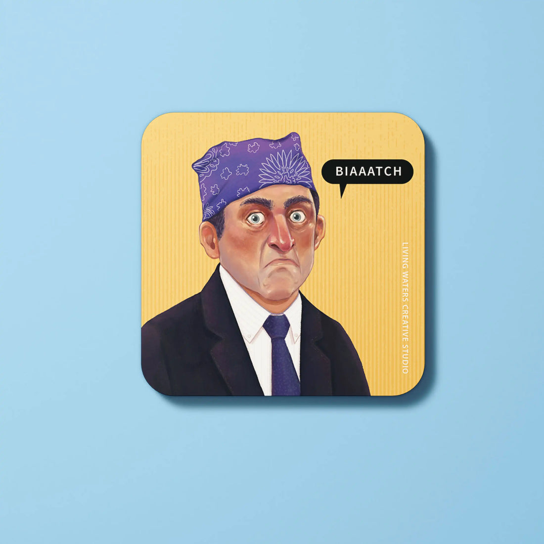 - Premium wooden coasters with original illustrated artwork